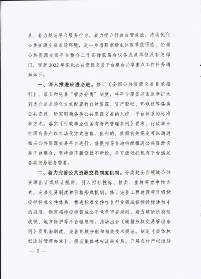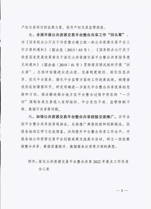國家發(fā)展改革委辦公廳關于深化公共資源交易平臺整合共享2022年重點工作任務的通知