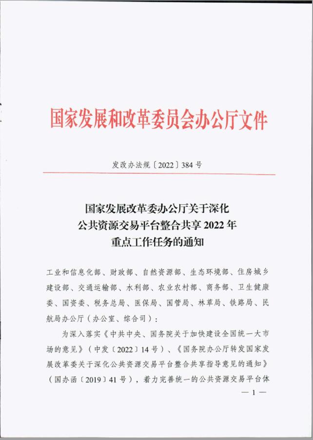 國家發(fā)展改革委辦公廳關于深化公共資源交易平臺整合共享2022年重點工作任務的通知 地址:眉山市東坡區(qū)眉州大道東三段186號天天向上5幢1單元11層3號